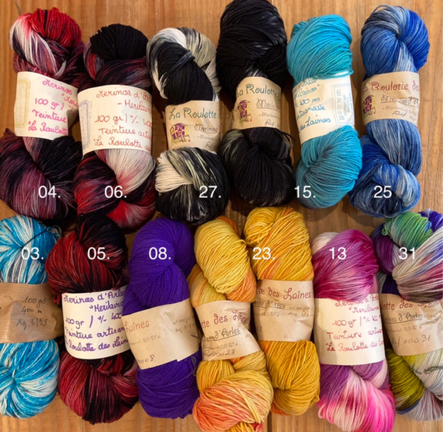 100% mérinos d'Arles – Mérilainos | Fingering | Echeveau 100gr 400m | Aig 3-3,5mm | Ech 21m 32rgs | Lavage main *Laine locale teinte à la main