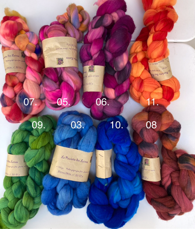Ruban tressé de laine cardé teintée à la main, pour filer, feutrer, tisser et tout autre art textile !