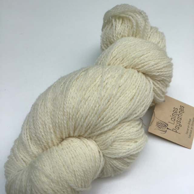 Écheveau de laine Tarasconnaise bio 2 fils torsadés de 100g-390m. Aig 2/2,5/3. Pensé en Ariège, fabriqué en Occitanie